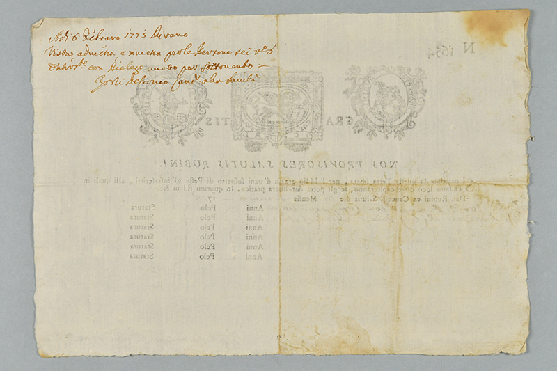 – 21 maggio 1776, Padron Andrea Giusti con compagni tre.